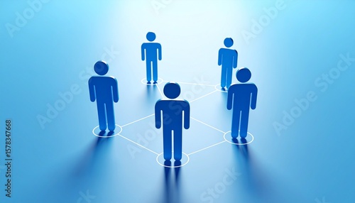 Community structure diagram with smoothly connected people silhouette 3D icons