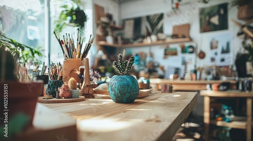Community Workshop with Artistic Tools and Decor
