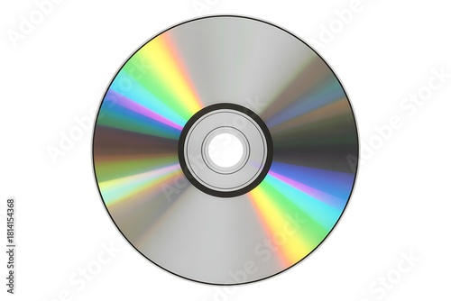 Compact Disc Technology and Data Storage Represented with Holographic Rainbow Reflections on a White Background