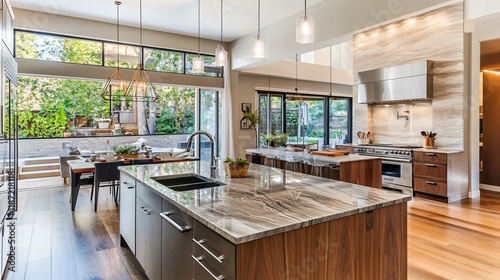 Compact yet functional kitchen with white cabinets, granite countertops, and modern appliances, copy space