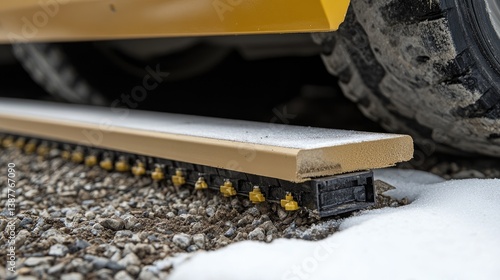 Compacted gravel base for road construction showing layer preparation and leveling tools