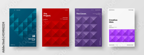 Company identity brochure template collection. Business presentation vector A4 vertical orientation front page mock up set. Corporate report cover abstract geometric illustration design layout bundle.
