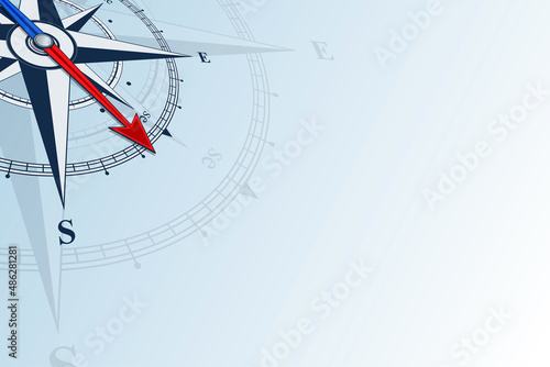 Compass southeast. Compass with wind rose, the arrow points to the southeast. Compass on a blue background. Compass illustrations can be used as background