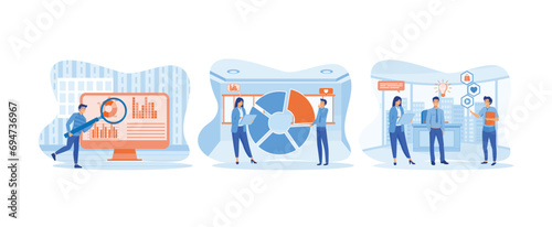 Competitor research. Targeting strategy. Consumer behavior. Marketing research set flat vector modern illustration