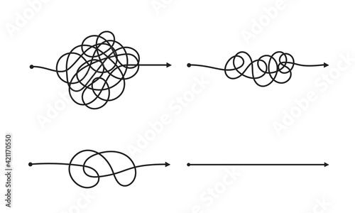 Complex and easy simple way from start to end vector illustration set.