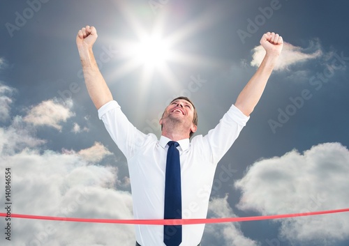 Composite image of businessman wining the race