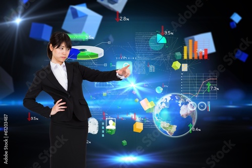 Composite image of focused businesswoman pointing