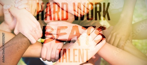 Composite image of hard work beats talent