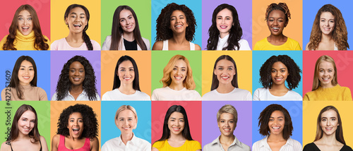 Composite set of smiling diverse multicultural women