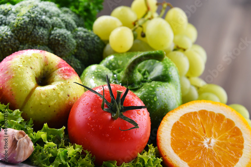 Composition with fresh organic vegetables and fruits