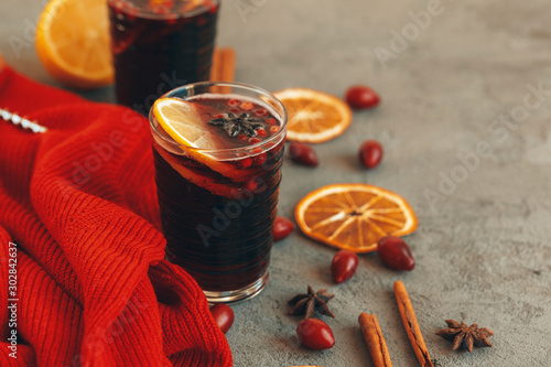 Composition with Glass of glint wine on table close up