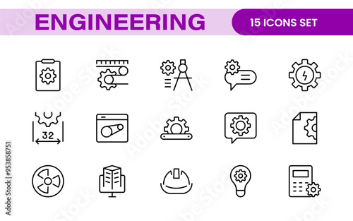 Comprehensive Engineering Icon Set: Precision-crafted icons for mechanical, civil, electrical, and software engineering projects.