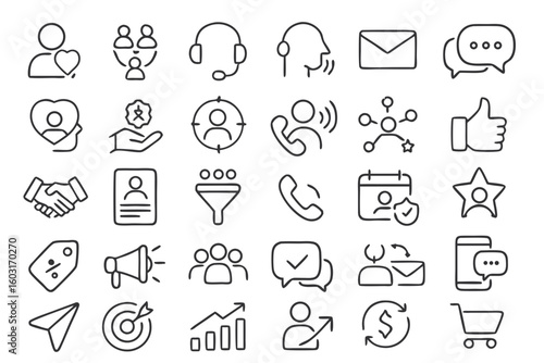 Comprehensive Set of Modern Communication Icons for Business Marketing and Customer Interaction Design