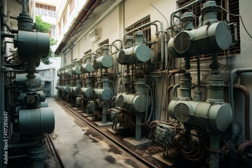 Compressors cooling system with fans and pipes in an industrial processing plant