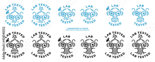 Concept for product packaging. Labeling - lab tested. The icon of a doctor or laboratory assistant in the form of a research flask with glasses is a symbol of medical research or verification.Vector
