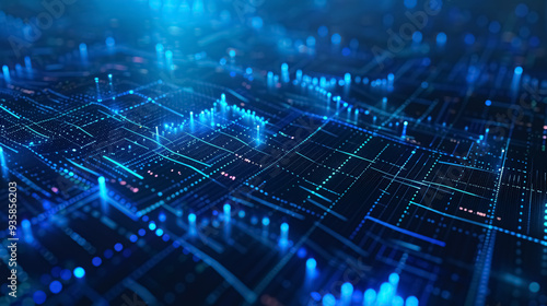 Concept of the stock market and fintech forex, featuring blurry blue digital charts over a dark