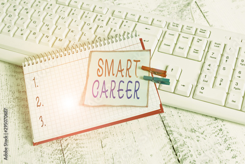 Conceptual hand writing showing Smart Career. Concept meaning job or profession that you have been trained for Expert on it notebook reminder clothespin with pinned sheet light wooden