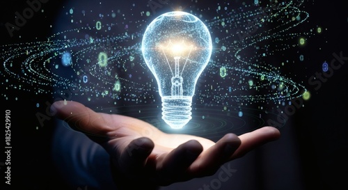 Conceptual Lightbulb Presenting Modern Technology On Hand Display