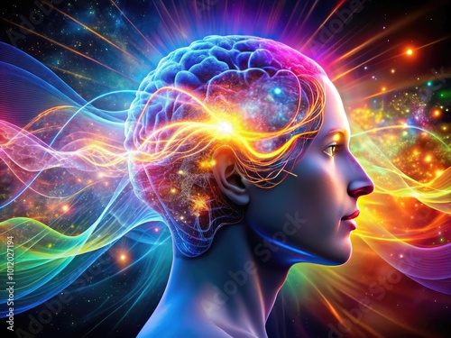 Conceptual representation of telepathy with abstract brainwaves and thought connection visualization