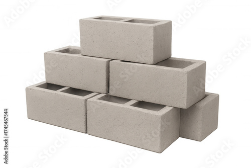 Concrete blocks stacking, building material for construction, strong foundation element, transparent background
