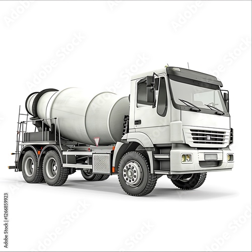 Concrete mixer delivery truck on white background
