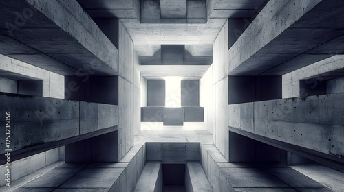 Concrete structure, upward view, light above, architectural design, background, construction