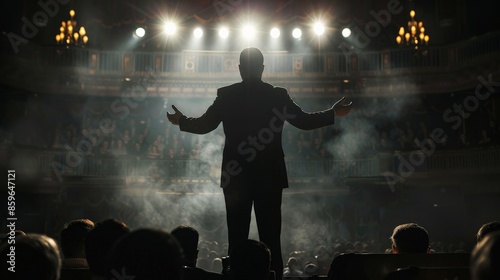 Conductor leads orchestra under stage lights