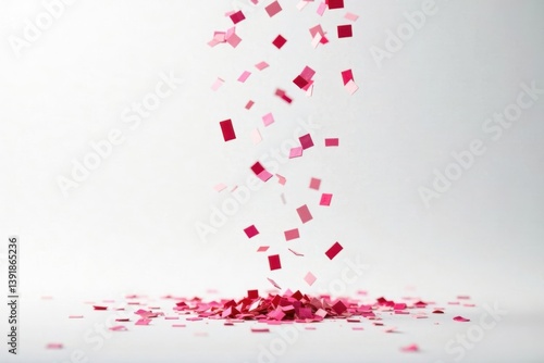 Confetti falls on a blank white background as a QR code is scanned , new year holiday, celebration