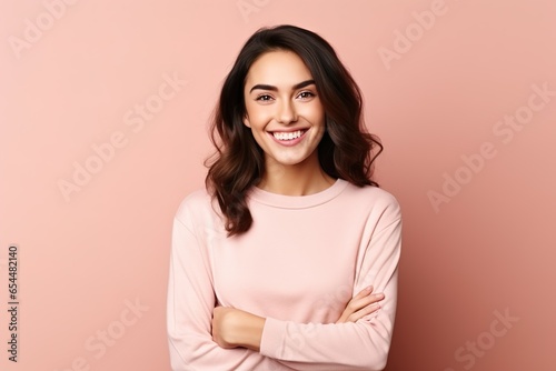 Confident Brunette Woman Posing with Crossed Arms, Isolated - Beauty, Joy, and Authenticity