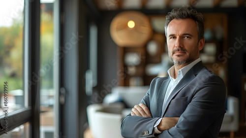 Confident Business Leader Contemplating in Modern Office Setting