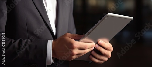 Confident Businessman in Suit Analyzing Data on Digital Tablet