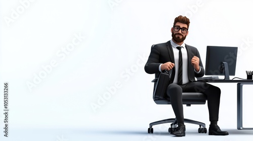 Confident businessman sitting at modern office desk