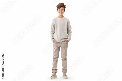 Confident European Teenage Boy is Standing and Posing on Copy Space.