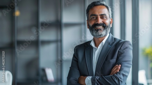 Confident Indian and Arabic businessmen in office setting.