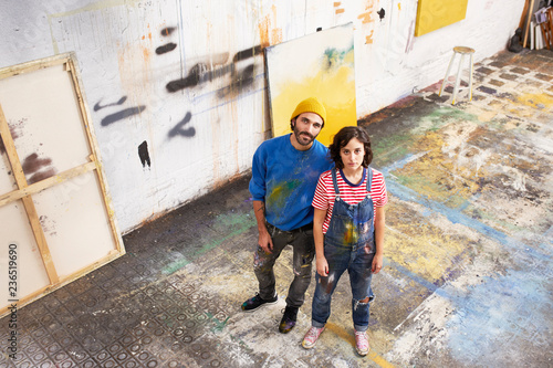 Confident Male And Female Artists Standing In Studio