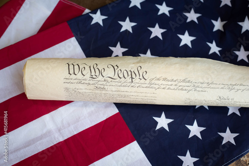 Constition of USA with US flag