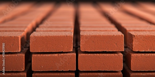 Construction concept using lightweight bricks. Rows of stacked red bricks arranged in a neat pattern