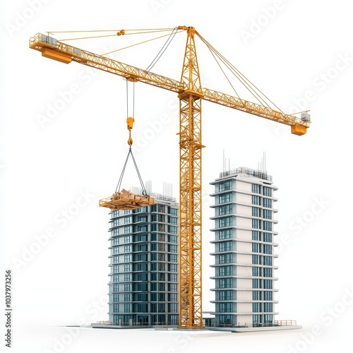 Construction Crane Lifting Materials on High Rise Building