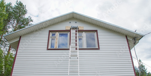 construction of a frame house. summer