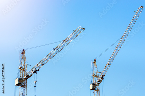Construction site, silhouettes of the construction industry. Construction, construction cranes