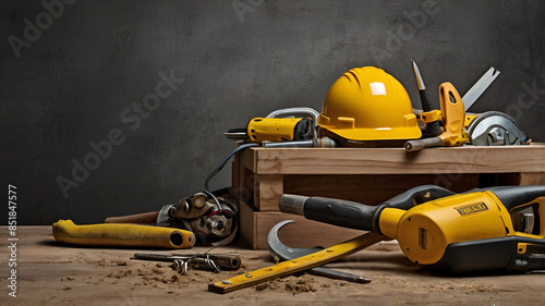 Construction tools with copy space for labor day concept. Ai generative.