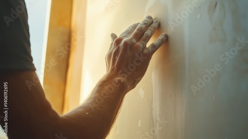 Construction worker installing drywall in a new home. Featuring drywall installation and home building