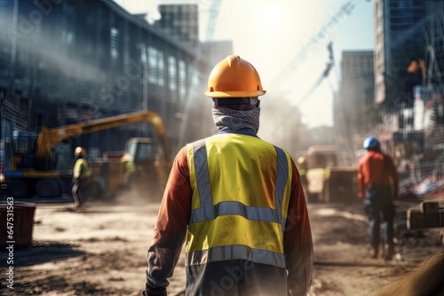 Construction Worker Wearing Safety Uniform, Engineering Works on Building Construction Site, Civil Engineer Observes and Checking the Project