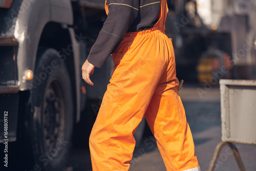 Construction worker working on a new asphalt layer on a public street.