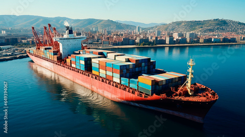 Container cargo ship in the harbor, International global business. Generative AI