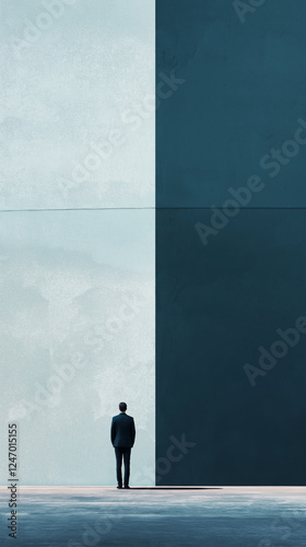 Contemplative figure silhouette split tone vertical divide abstract art concept