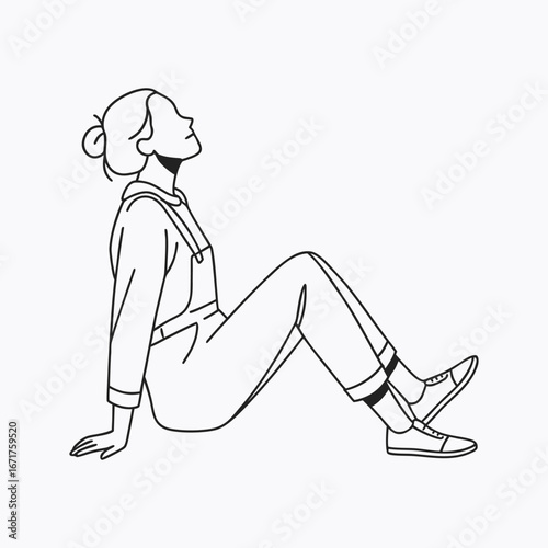 Contemplative Silhouette: A minimalist line illustration of a person sitting and looking upwards, evoking a sense of introspection, peace, and reflection.