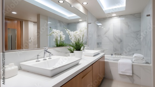Contemporary Bathroom with Double Sinks and Spacious Mirror