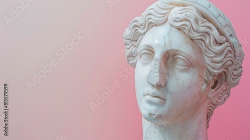 Contemporary colored lighting on classical sculpture head, blending ancient art with modern aesthetics