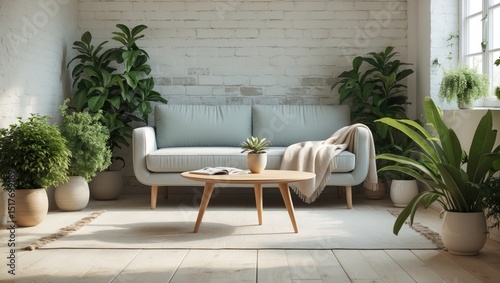 Contemporary home decor featuring cozy sofa, armchairs, and floral houseplants